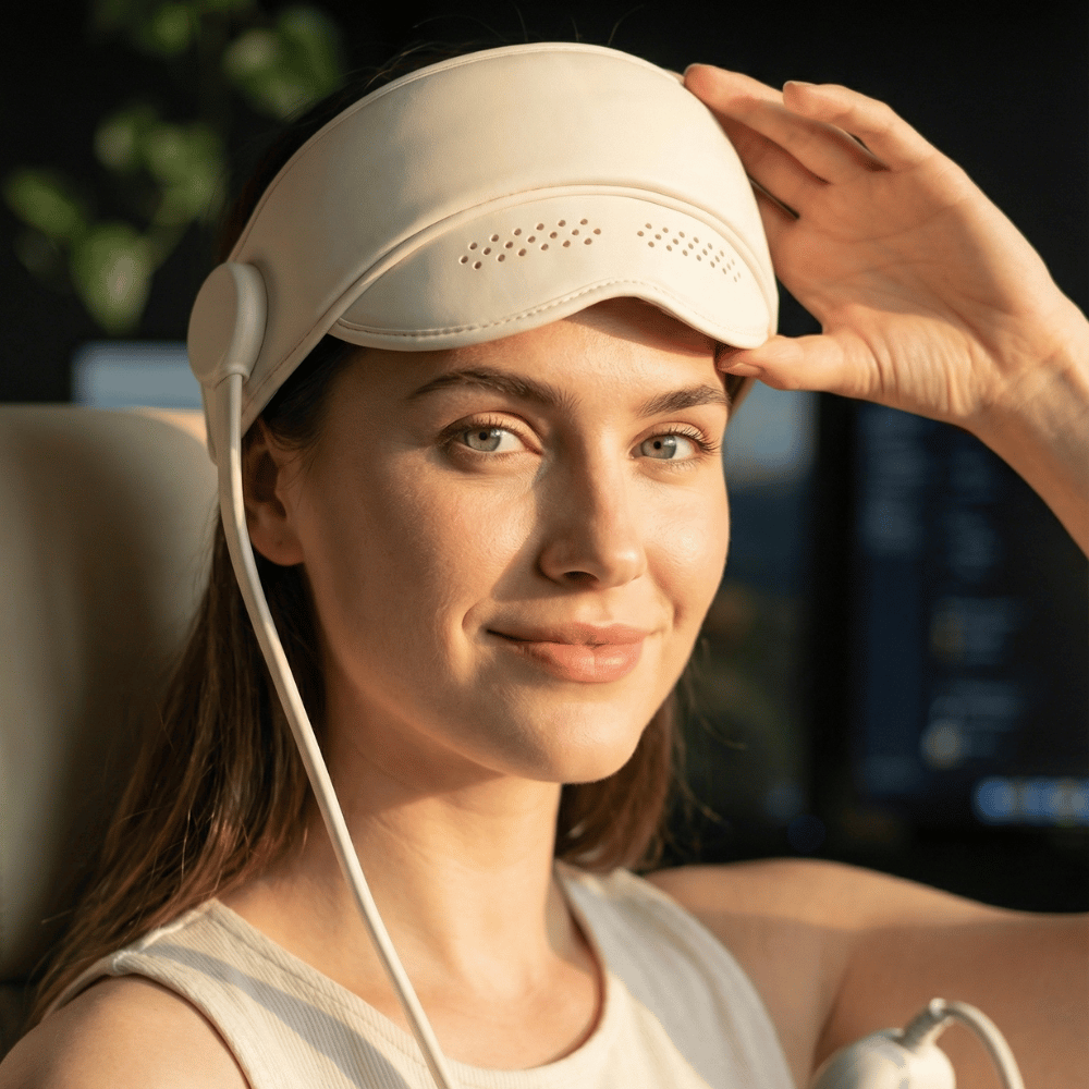 Yes. The device covers your eyes completely, blocks harsh light, and targets the tension zones that cause the “knife-behind-the-eyes” feeling. Users report softer light sensitivity and reduced forehead pressure even on tough days.