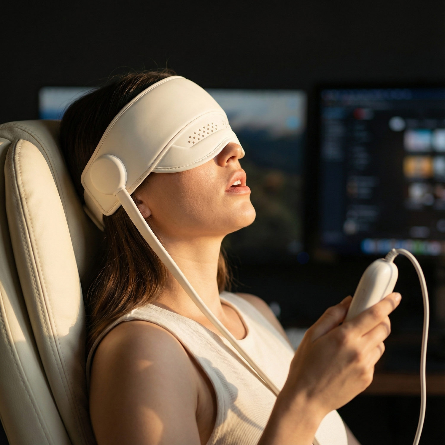 Yes. Our device uses natural methods — heat therapy and air-compression — with no medication, no side effects, and no long-term risks. You can use it daily for relaxation, stress relief, eye strain, or before bed.